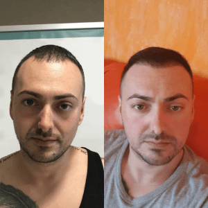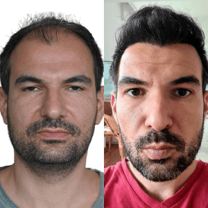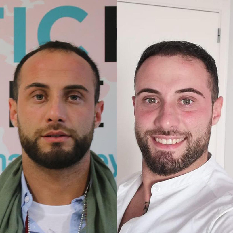 Our “before and after” photos show the results of hair transplantation procedures where Follicular Unit Extraction (FUE) and Direct Hair Implantation (DHI) were used, which allow us to achieve natural and long-lasting results.