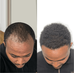 After photos are typically taken 9-12 months after the hair transplant procedure when the new hair growth has fully matured